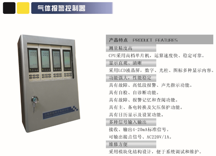 工作原理:探測器把采集到的氣體濃度信號轉(zhuǎn)換為電信號,并以(4-20)mA標(biāo)準(zhǔn)信號的方式傳給控制器;控制器采用分線式設(shè)計,一路控制器對應(yīng)一路探測器,控制器接收探測器單元傳上來的(4-20)mA信號,經(jīng)過處理、邏輯分析,以液晶數(shù)字光柱同步顯示、聲光報警的方式反應(yīng)出來,記錄報警時間和報警濃度值,并啟動所連接的風(fēng)機(jī)、磁閥或其它消防設(shè)備。