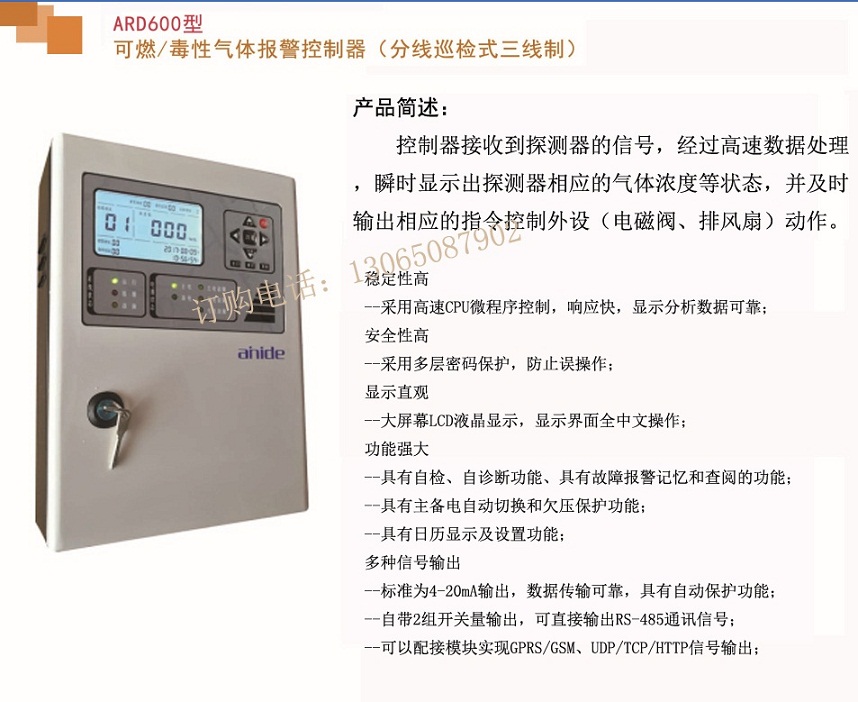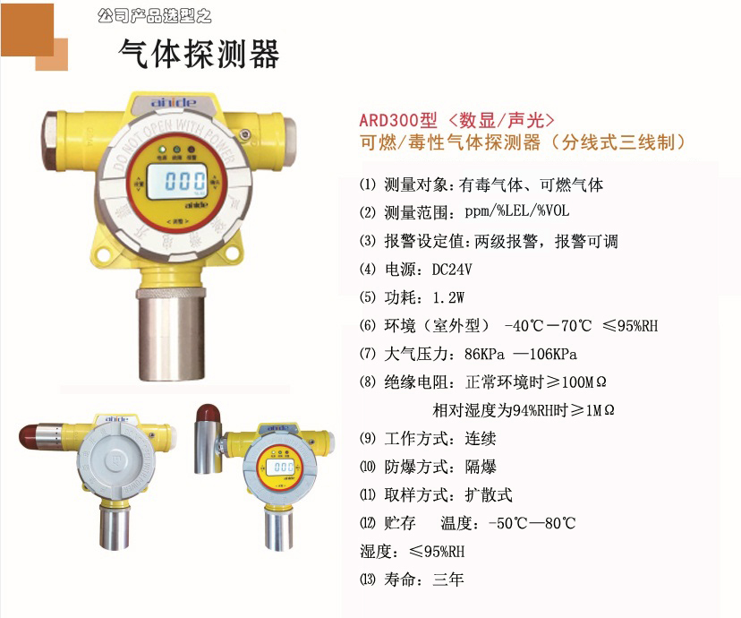 與ARD800W型氣體報(bào)警控制器配套使用;