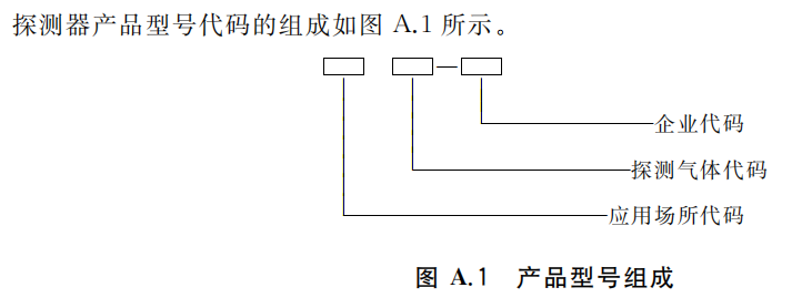 新國(guó)標(biāo)中比較大的一個(gè)改變就是對(duì)燃?xì)鈭?bào)警器的型號(hào)命名上的要求。在新國(guó)標(biāo)4.3.1.12規(guī)定探測(cè)器型號(hào)