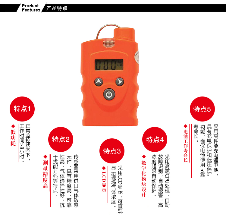 ◆檢測范圍: 0-100%LEL